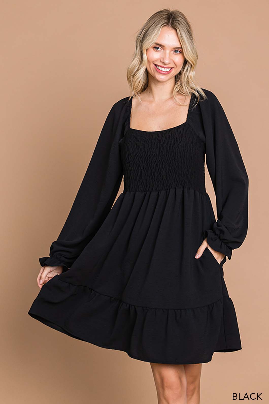 Women's Air Flow Smocking Detail Long Sleeve Dress