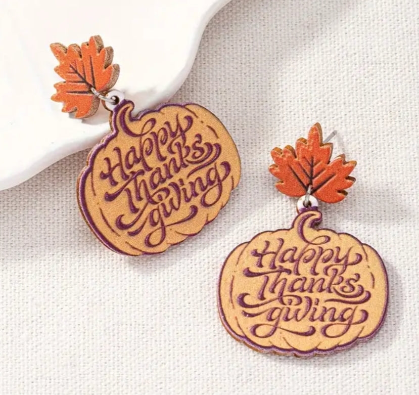 Autumn-Themed Wooden Earrings with Maple Leaf pumpkin