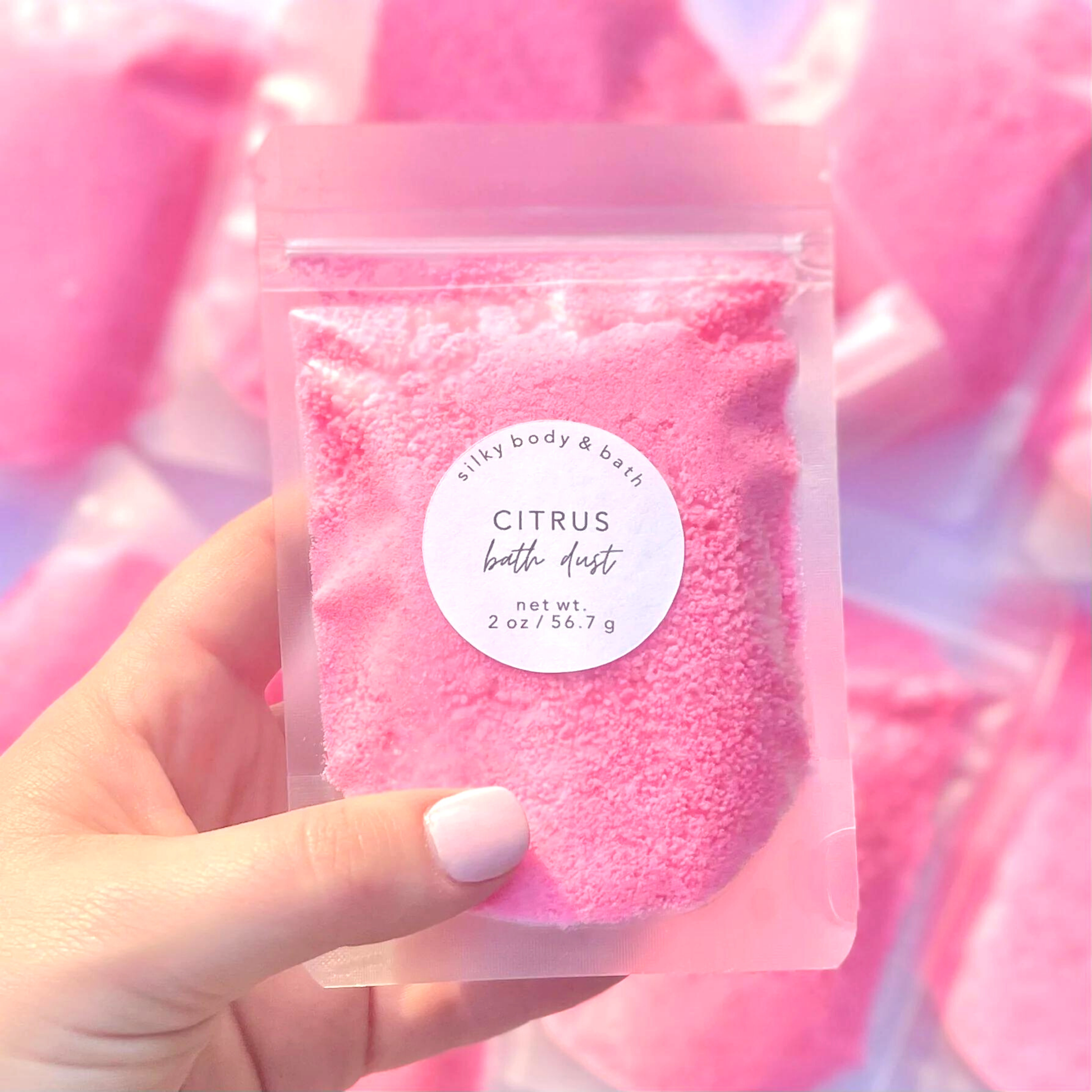 ā Citrus - Pink Bath Dust scented with Lemongrass Essential Oil.