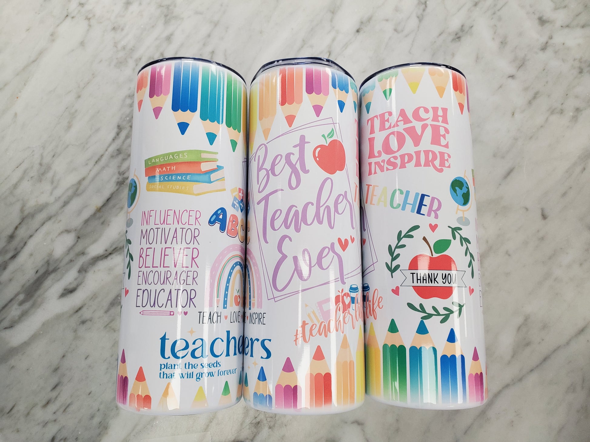 This 20oz stainless steel tumbler is great for your hot cocoa or coffee. Printed with our Best Teacher Ever design new for the 2024 holiday season! $18.99 each or $15 each if you buy 2 or more in a single transaction.