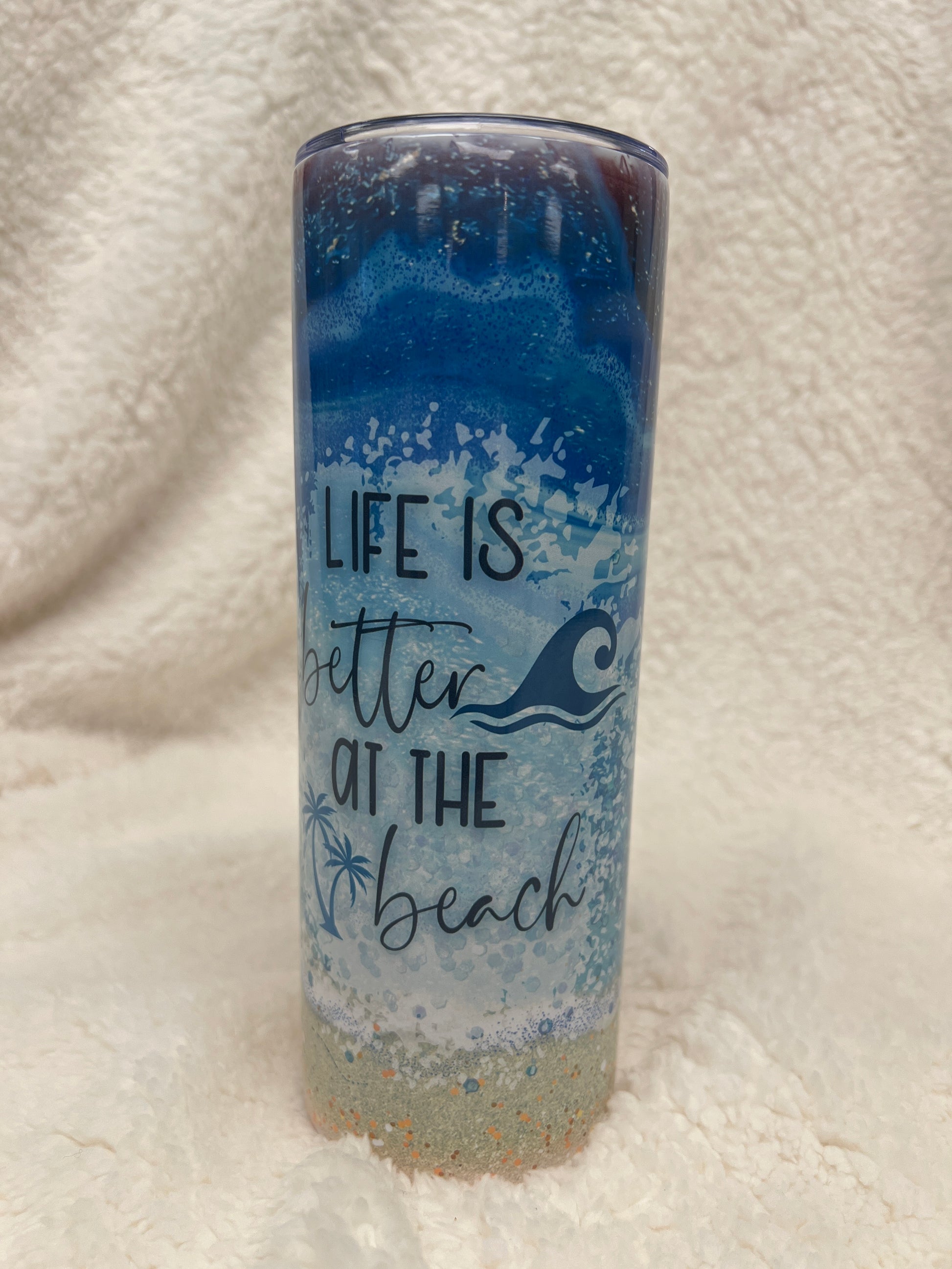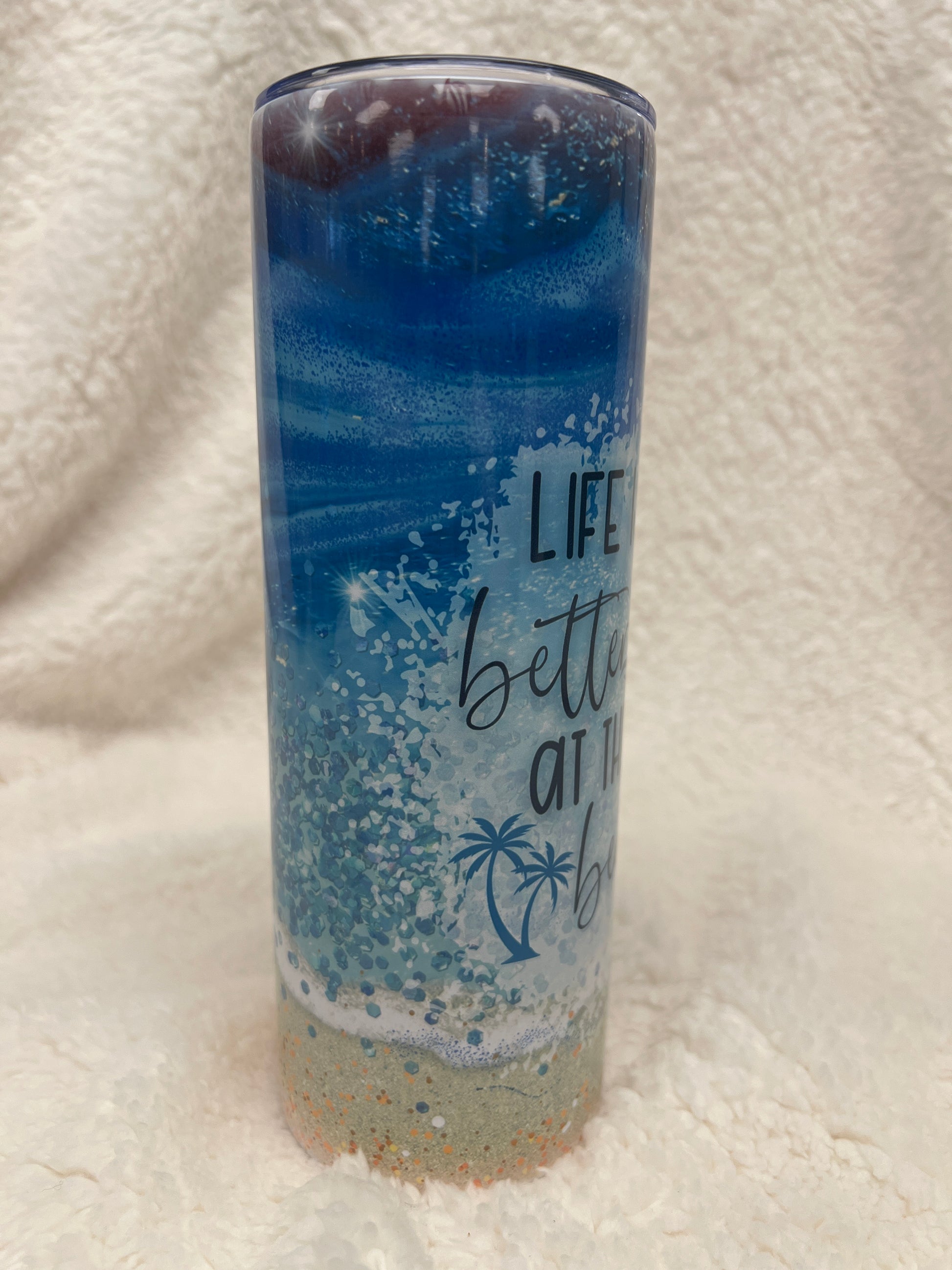This 20oz stainless steel tumbler is great for your hot cocoa or coffee. Printed with our Life is Better at the Beach design! $18.99 each or $15 each if you buy 2 or more in a single transaction.