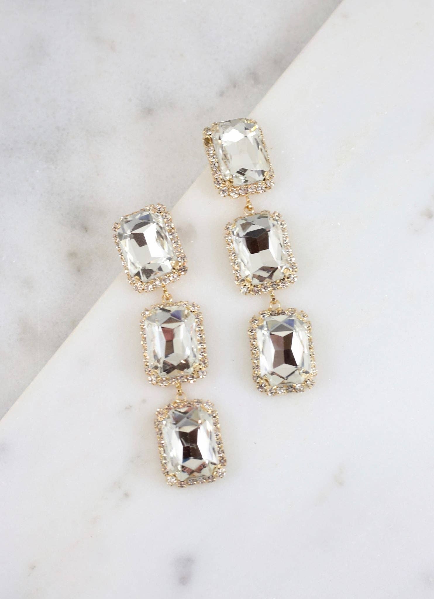 This statement drop earring features clear stones surrounded by CZs for a wonderful look on a post back.