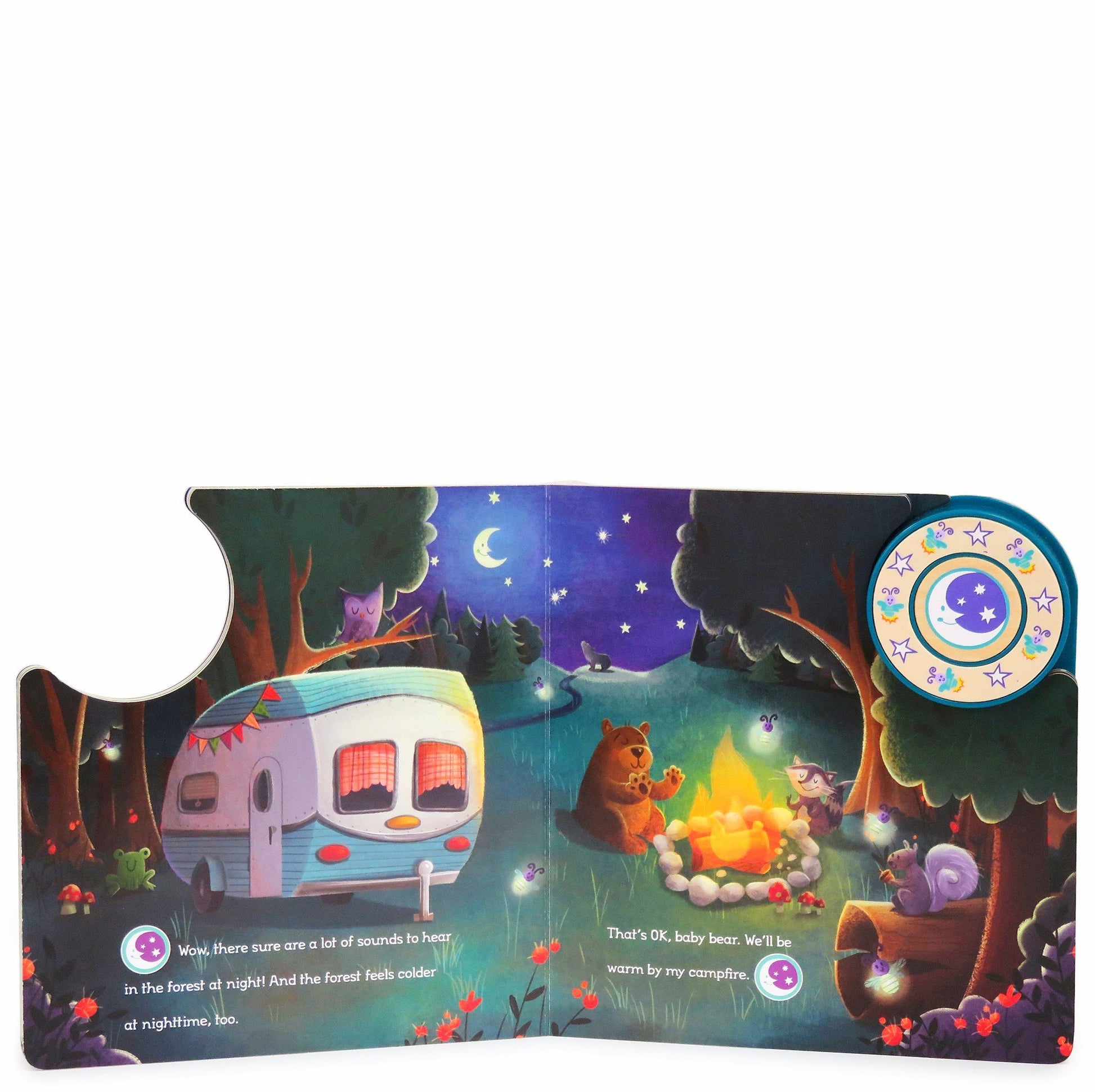 Join Little Camper on an adventure with the look and feel of a classic children’s book. You’ll hear a variety of forest-animal sounds as Little Camper spends the night in the forest for the very first time. Picture icons cue little ones to press the button and play the sound effects.