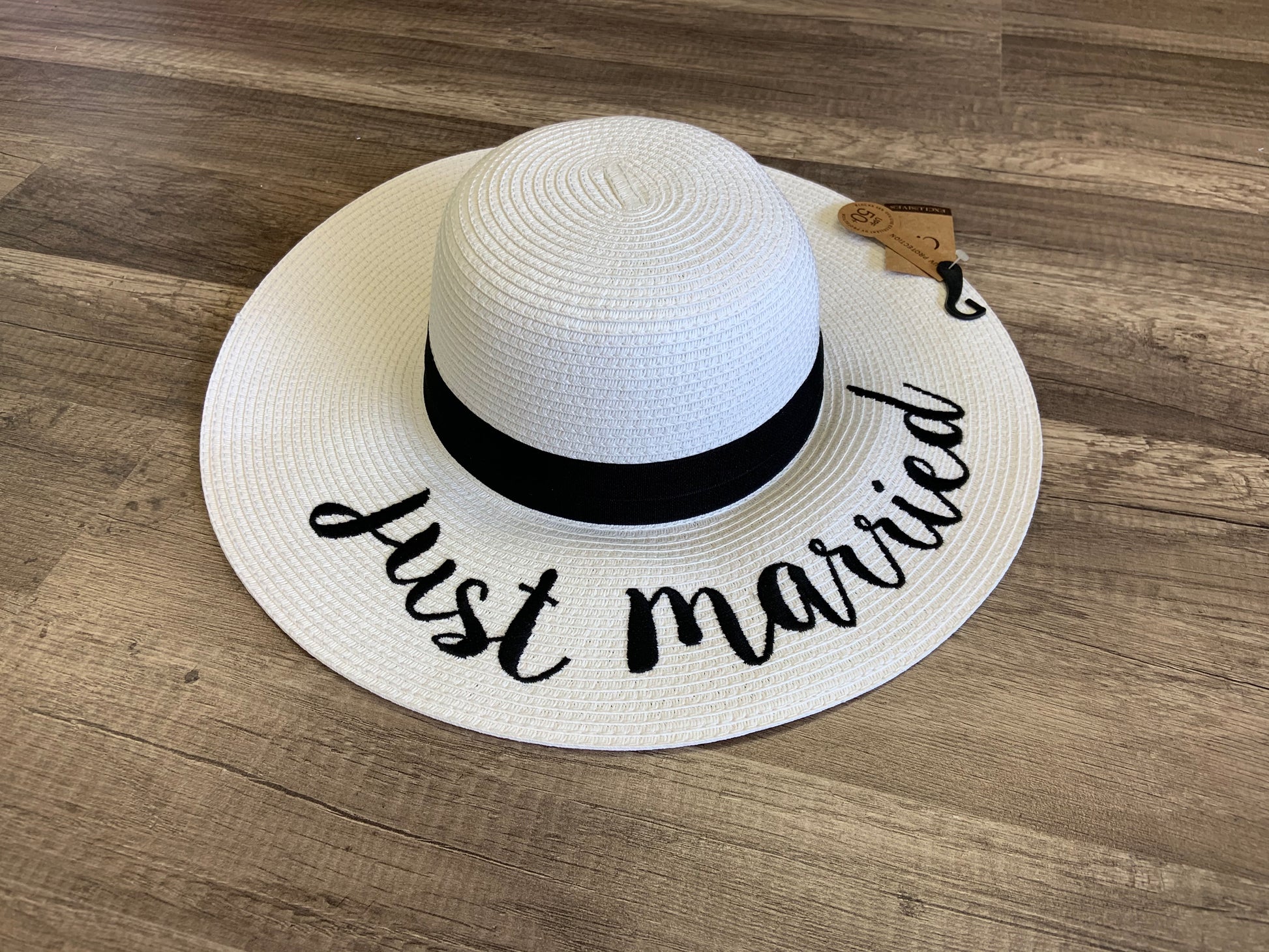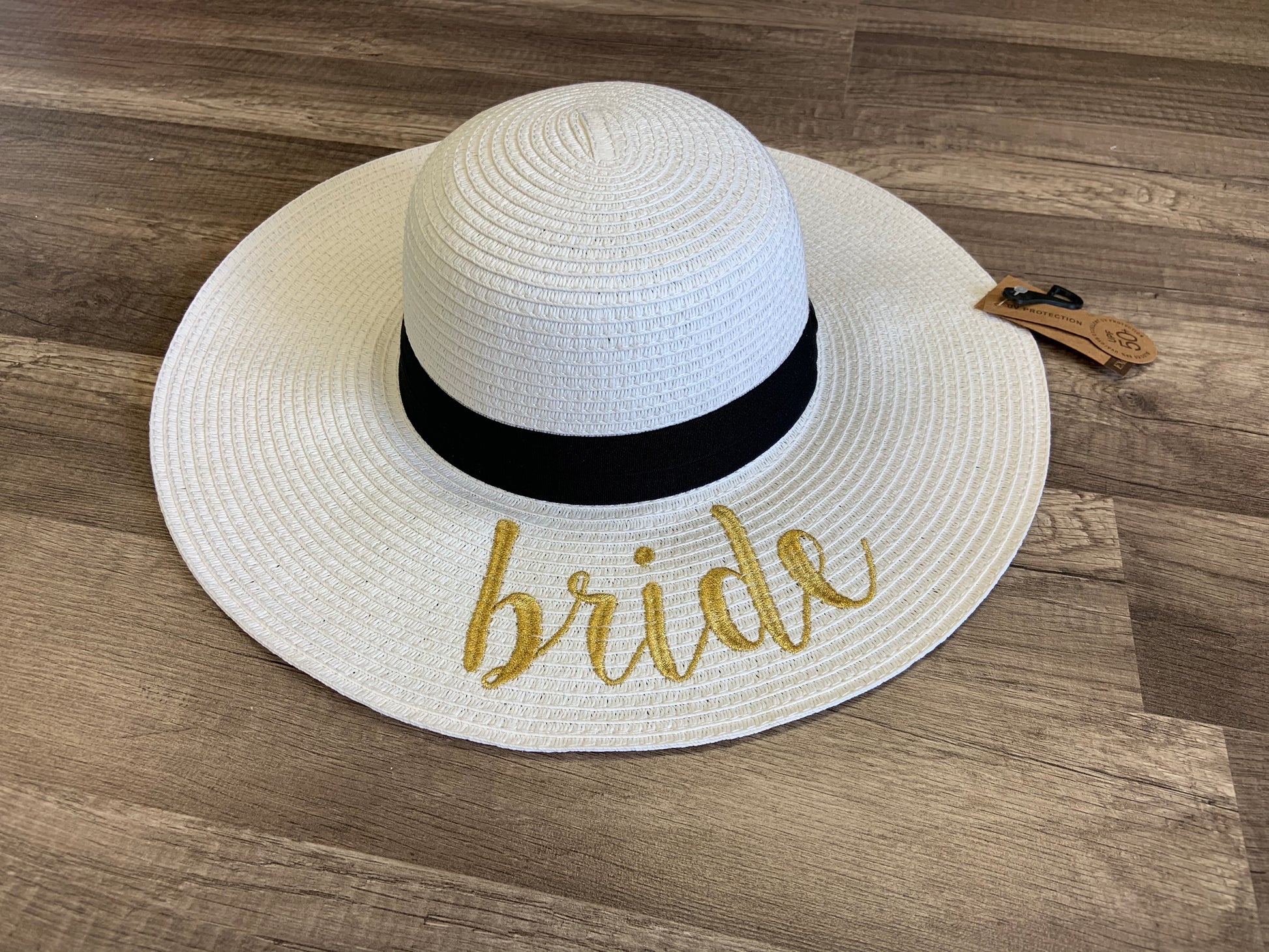 Our sun hat is beautifully embroidered, with plenty of choices for all of the members of your bridal party! Enjoy wearing this lovely sun hat while you lounge next to your favorite ocean or pool!
