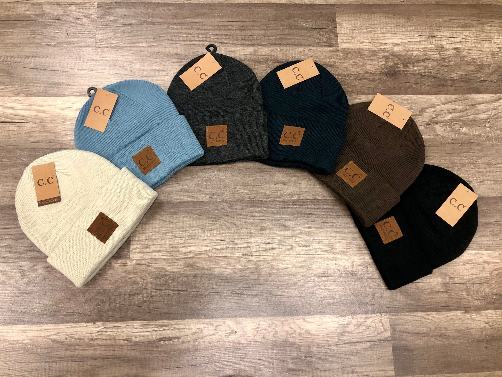 This solid CC beanie is great for men and women with the newest oversize C.C Logo! Check it out for your fall fun!