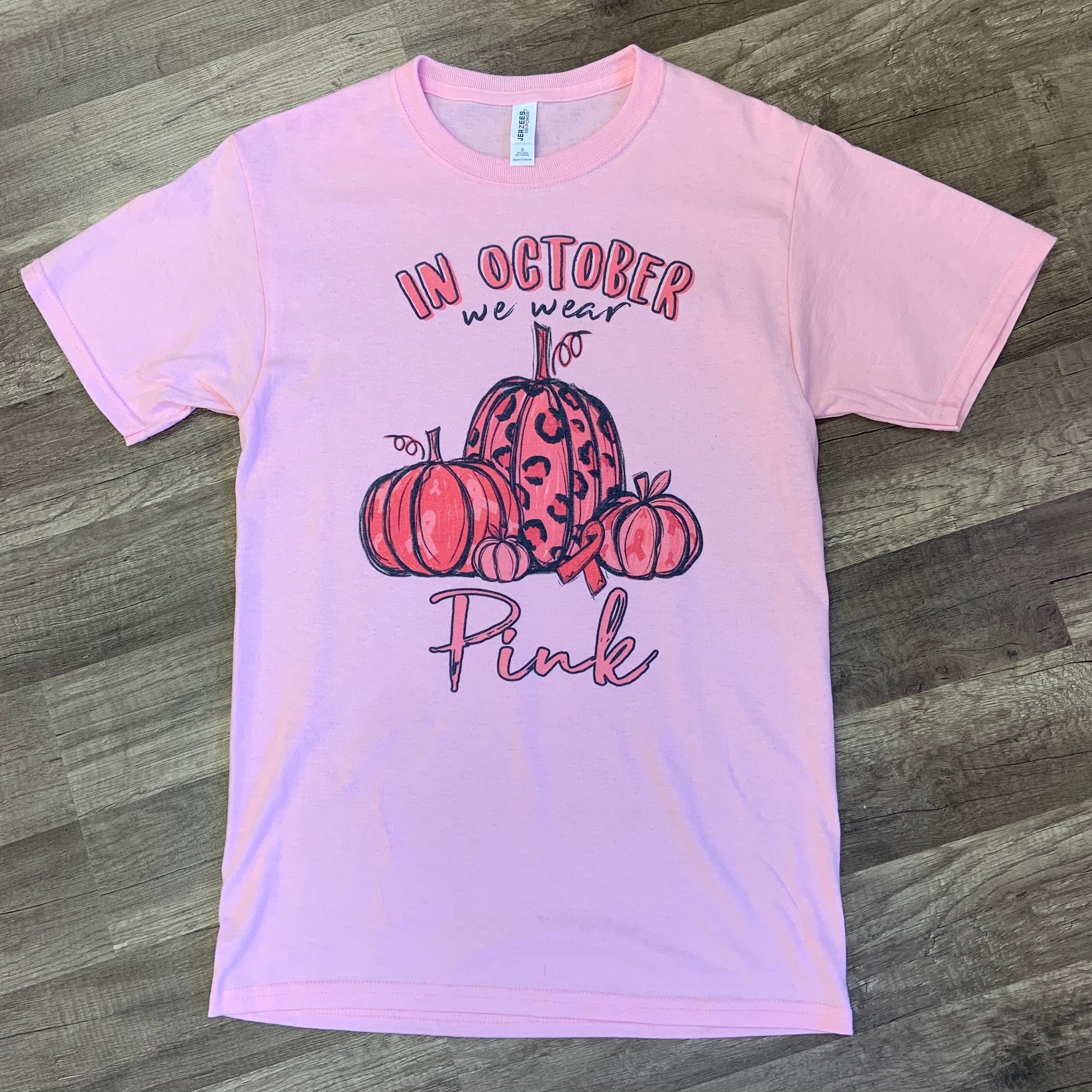 This t-shirt is perfect for the fall season and to highlight Breast Cancer Awareness month.