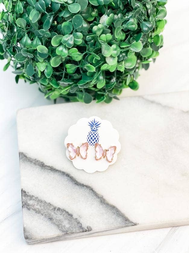 Jewel Butterfly Stud Earrings Pink