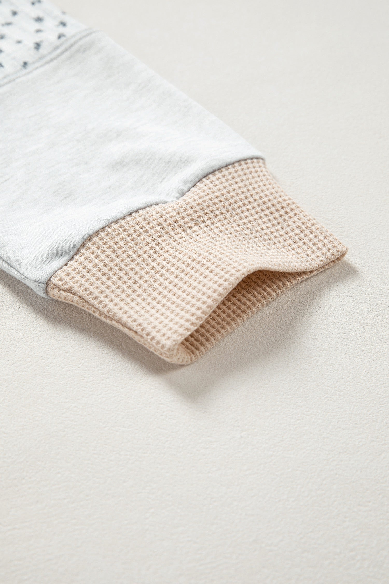 The raglan sleeve patchwork adds a chic relaxed vibe.