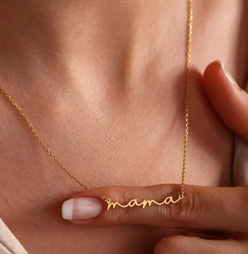 Mama pendant necklace. On an approximately 17" chain. Made from Titanium Steel.