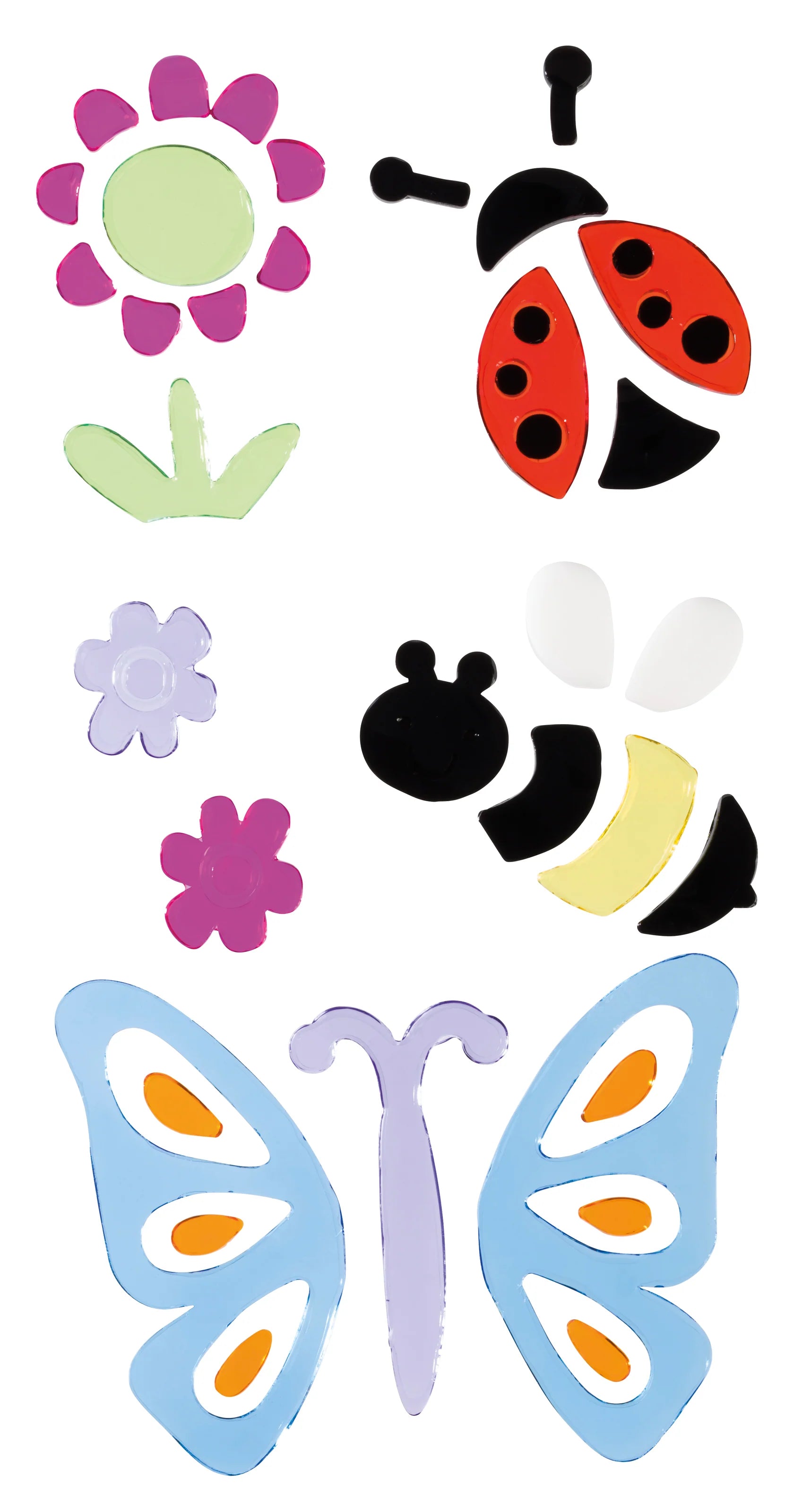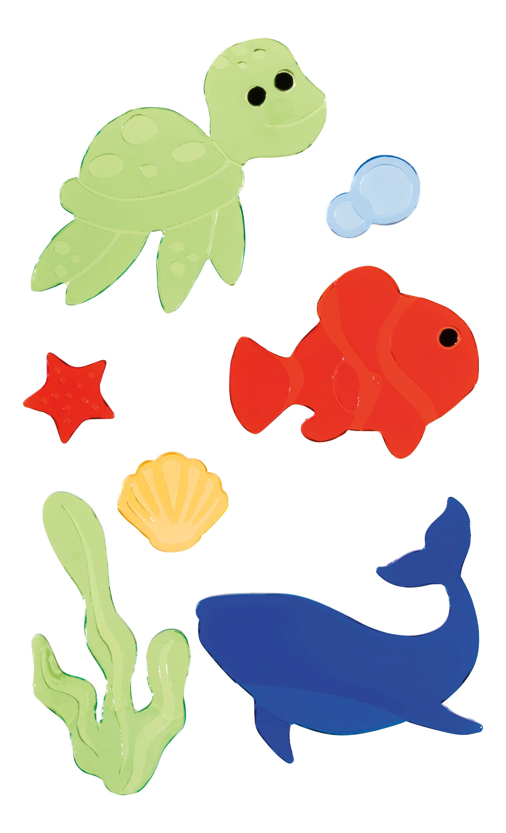 This set of jewel-toned clings comes in one of two collections, under the sea or in the garden. Each selection has a variety of underwater or garden friends, including a turtle and a whale or a flower, ladybug, and bee. Add see-through color to windows in the car, classroom - or anywhere! Clings are reusable, so take them on every road trip to keep little hands and minds busy. Applying and peeling off and reapplying is a fun task that develops fine-motor control.