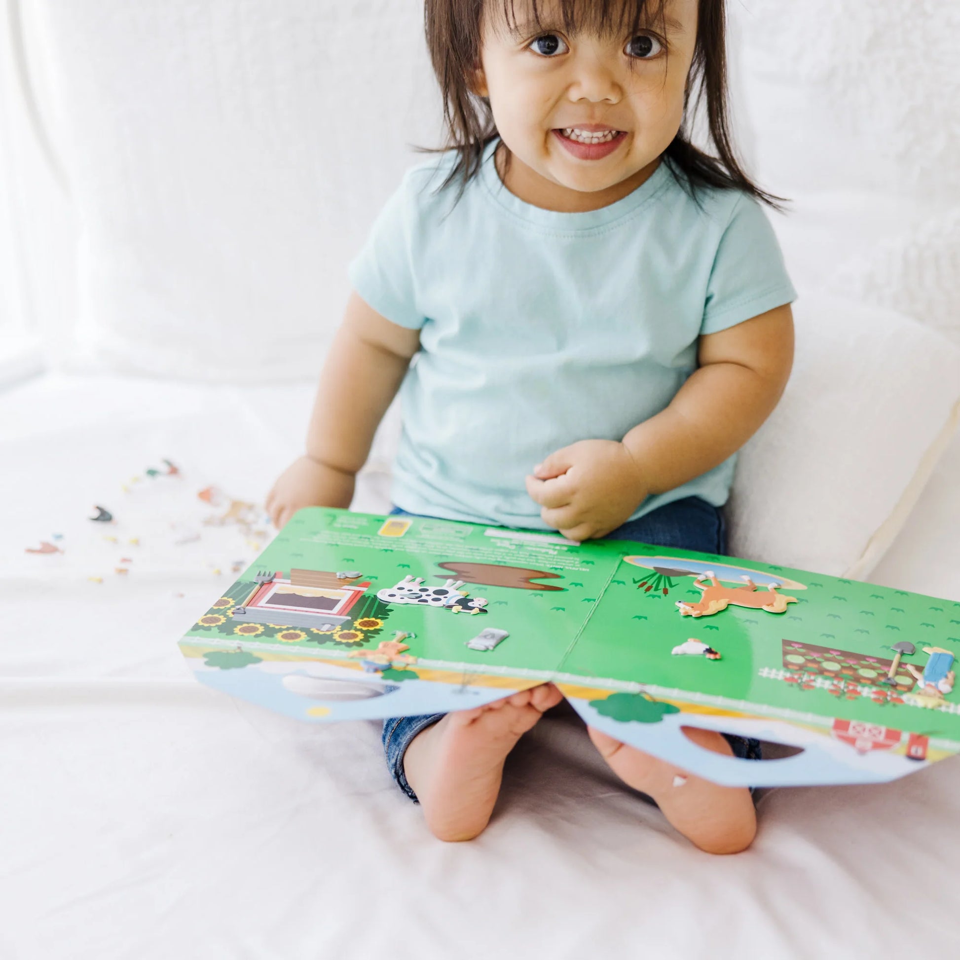 - Includes 52 reusable farm-themed puffy stickers plus fold-and-go play scenes