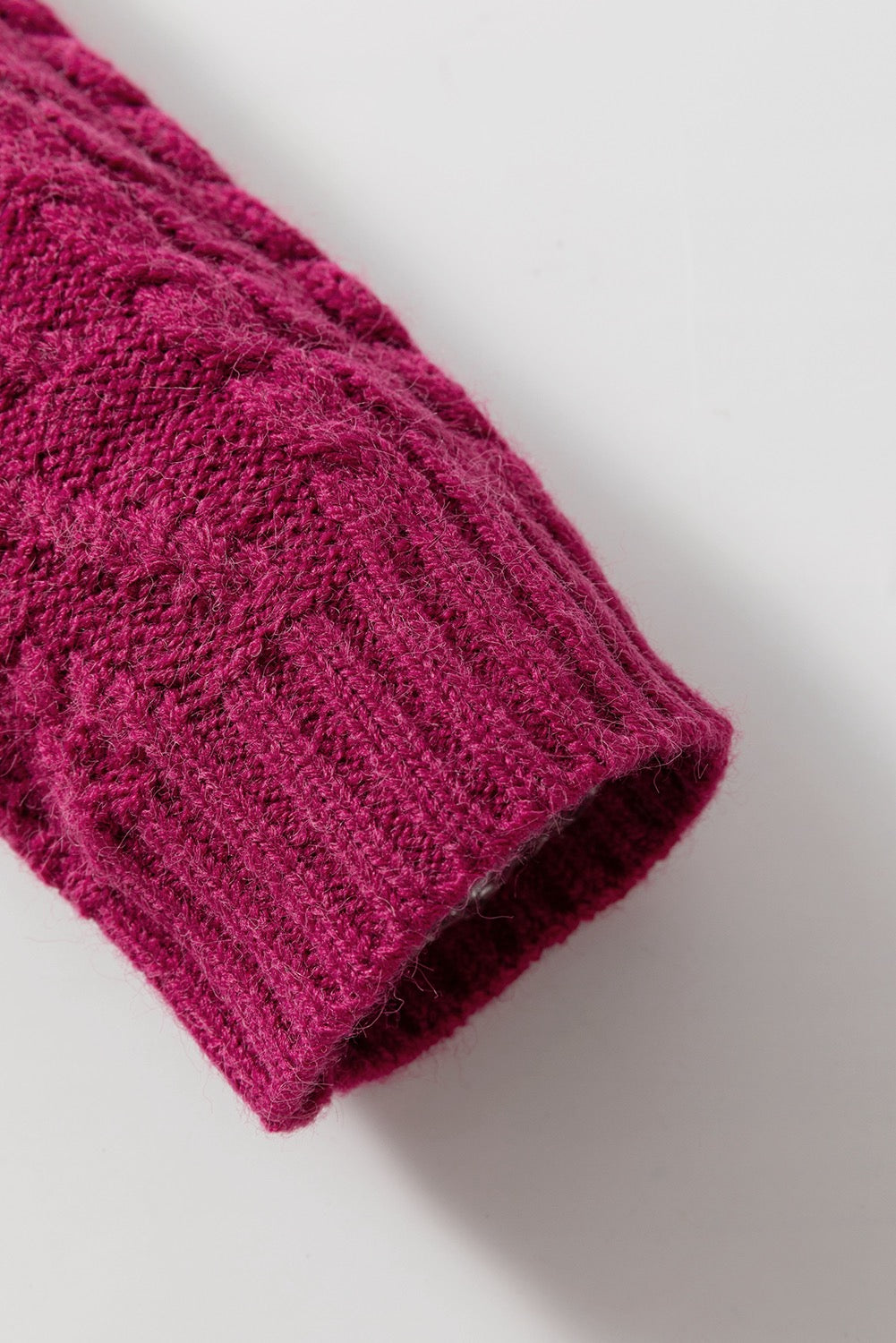 - Vibrant color blocking gives this winter sweater a bold, fashionable statement.