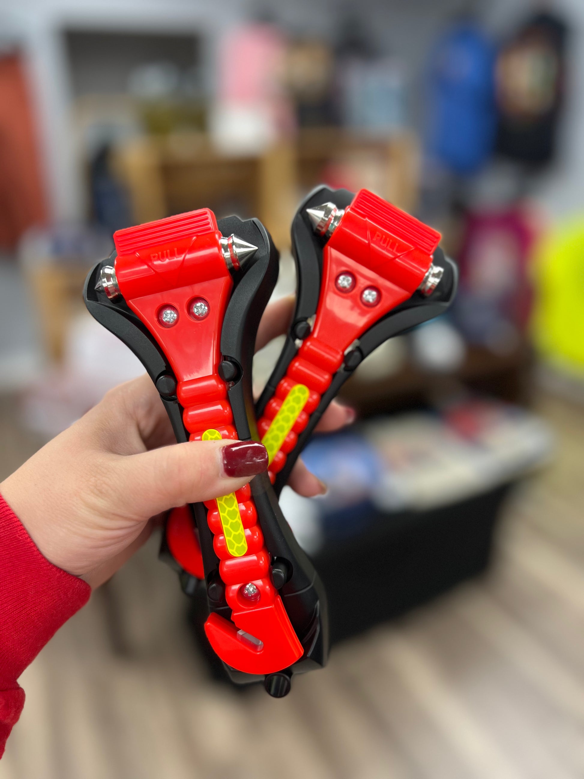 2-in-1 safety tool - one end is a seat belt cutter for cutting the seat belt and the other end is a window opener tool with two hardened sharp and heavy carbon steel points, You can escape danger in an emergency in a car.