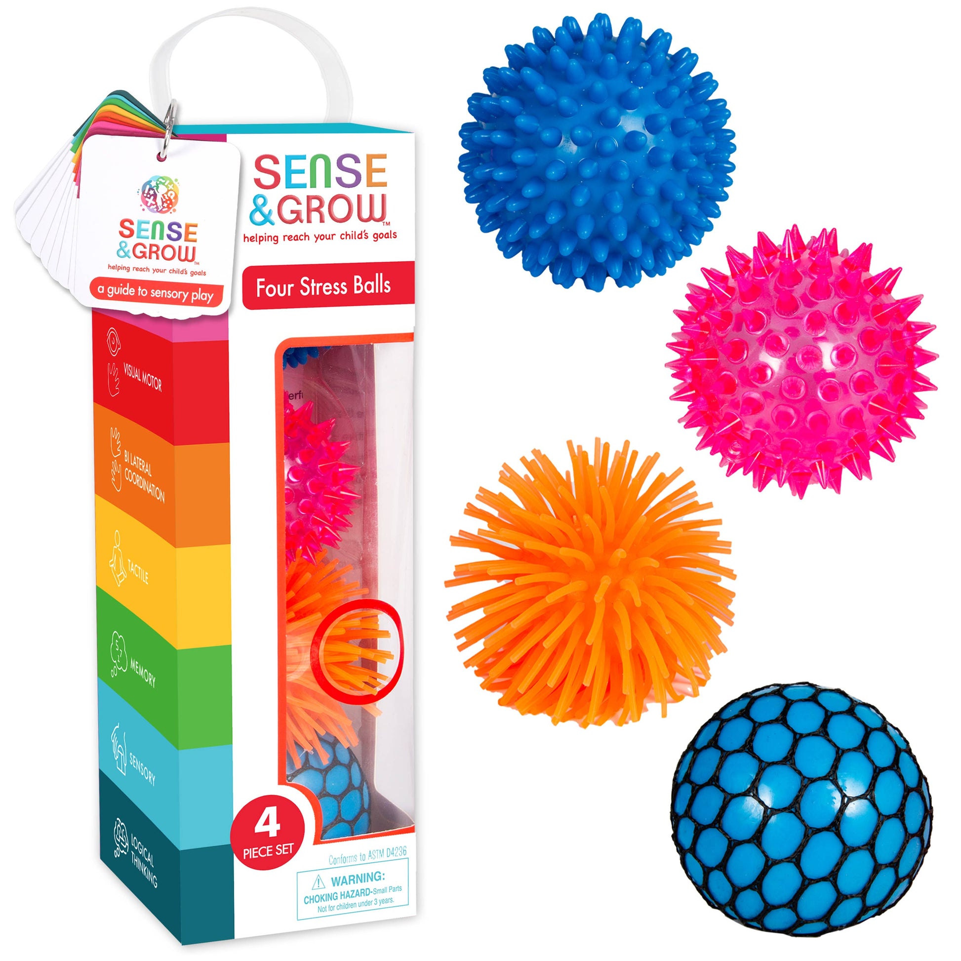 Sense & Grow 4 Stress Relief Balls for Kids & Adults