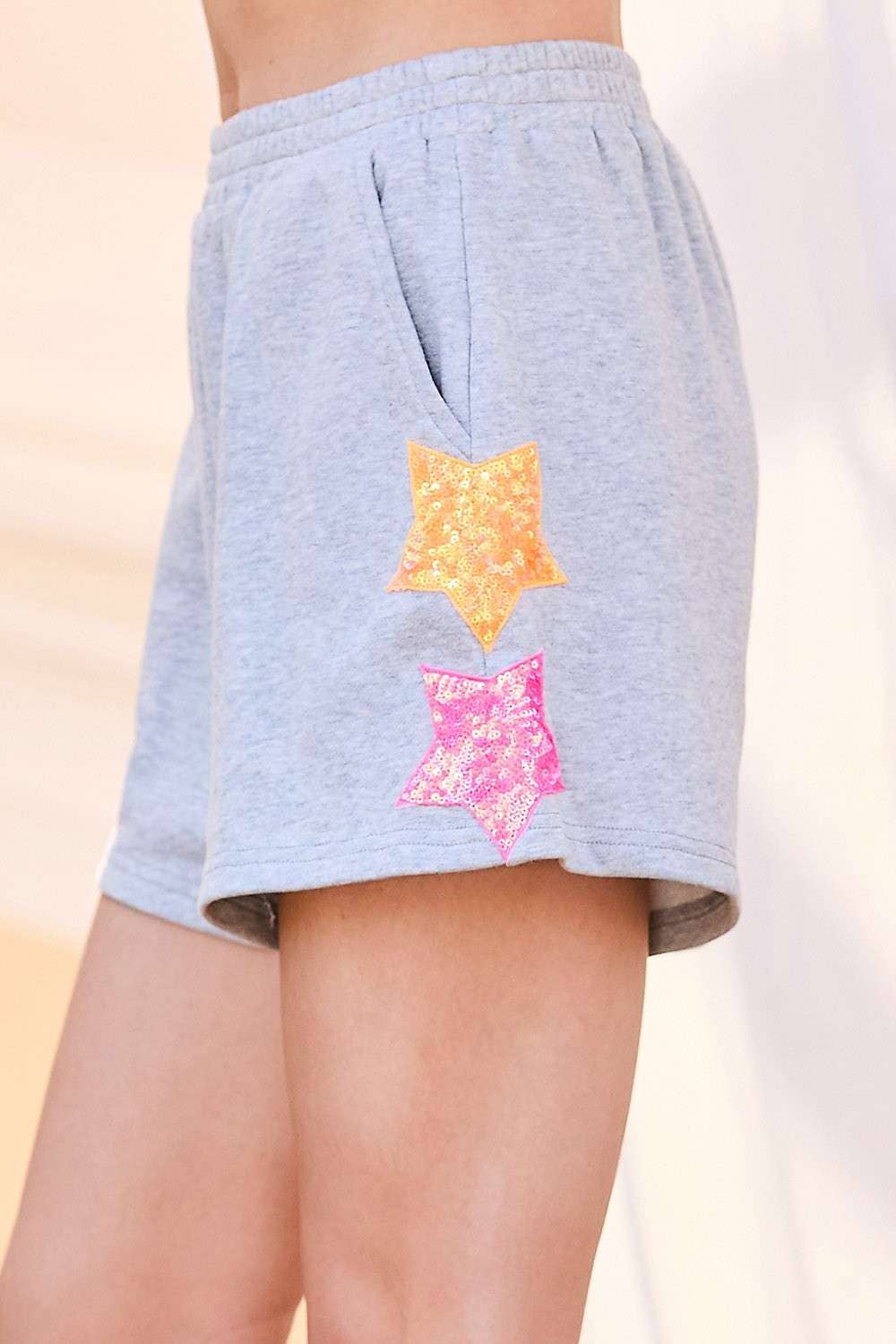 Waist Elastic Band Side Pockets Star Patch French Terry Shorts
