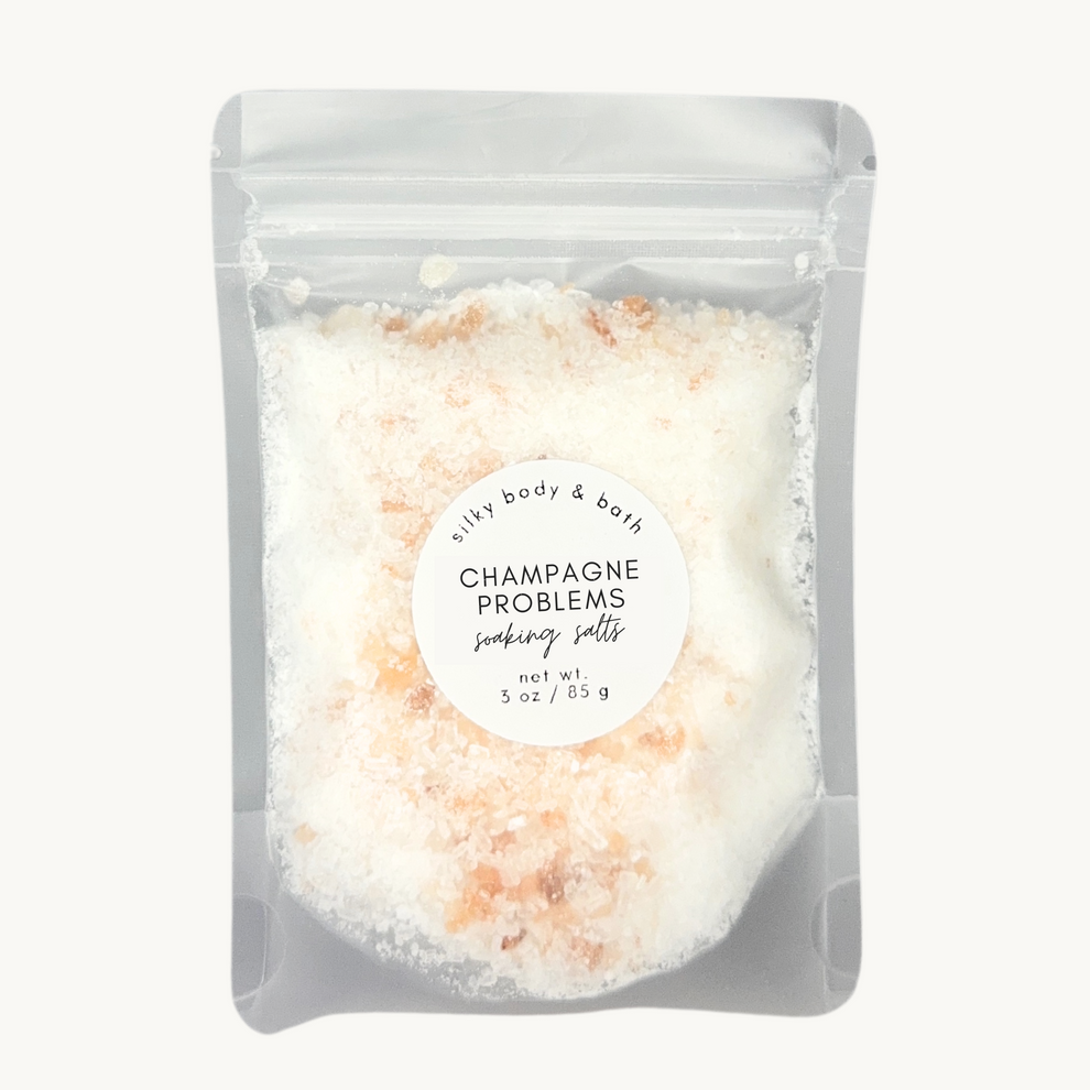 When added to water, the salts will dissipate adding magnesium, minerals & sodium into your water. The blend of salts, along with the grapeseed and jojoba oil, your skill will feel silky after your soak.