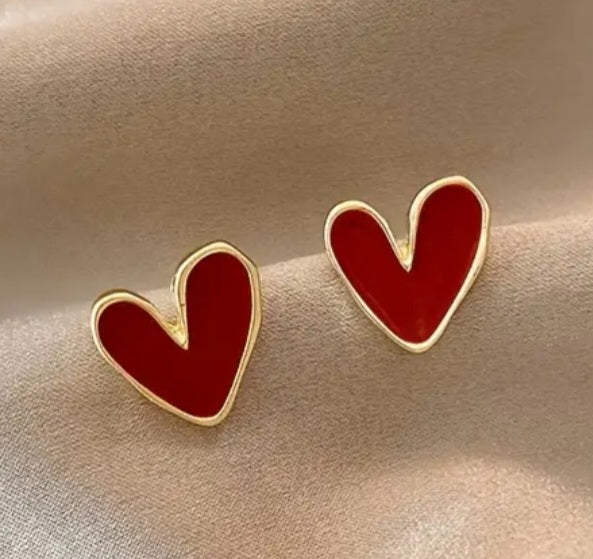 Simple Red & Gold Heart Stud earrings