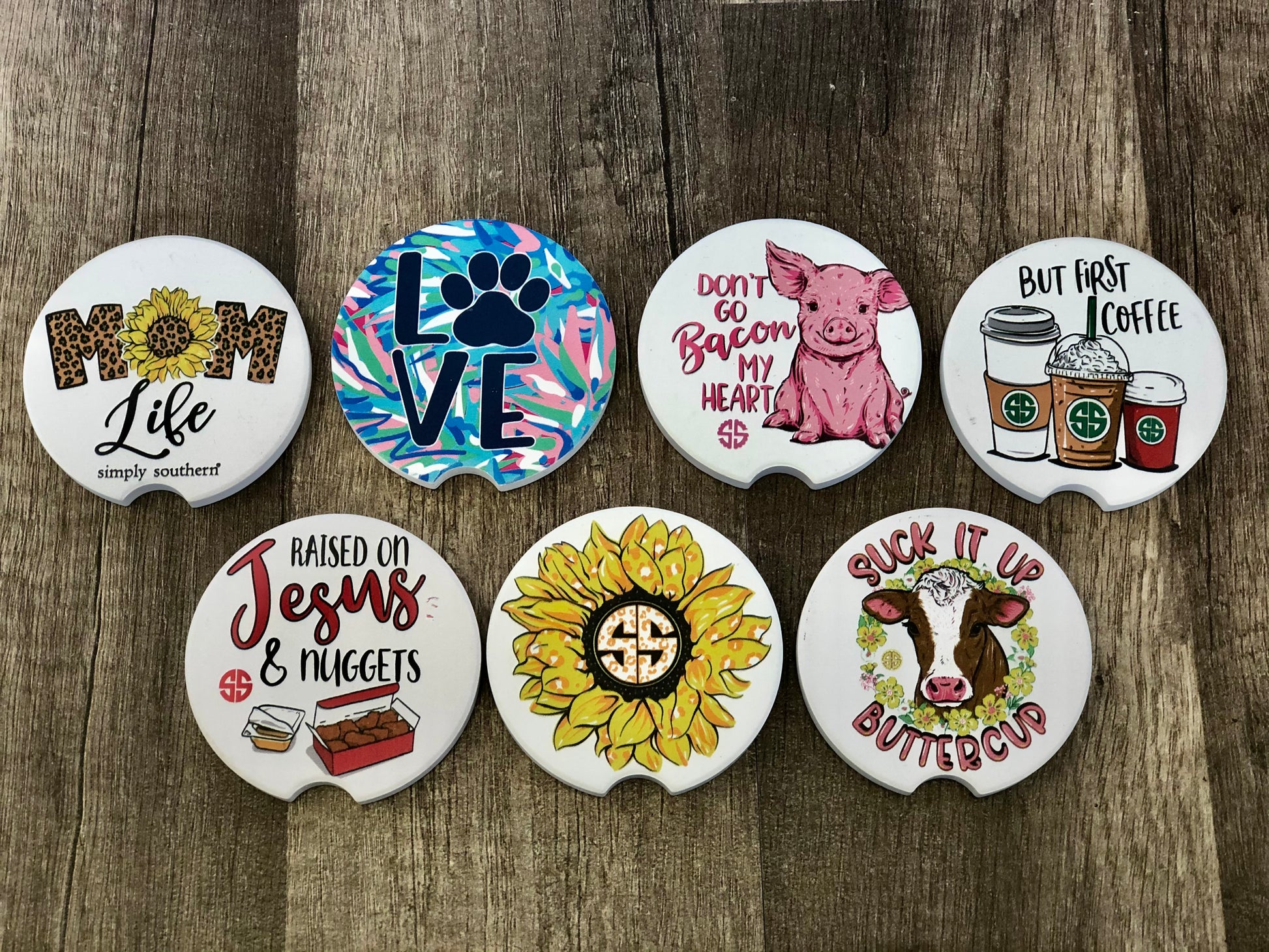 These Car Coasters are sold in singles so mix and match your favorite designs to fill all the cup holders in your car!