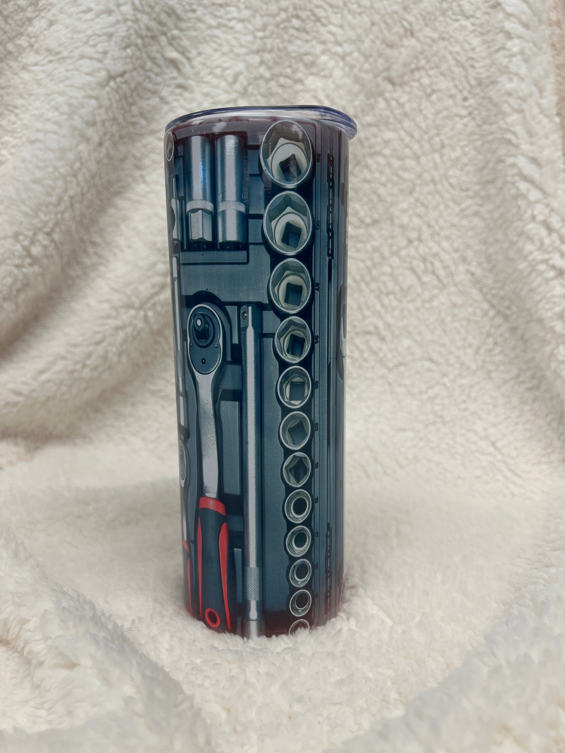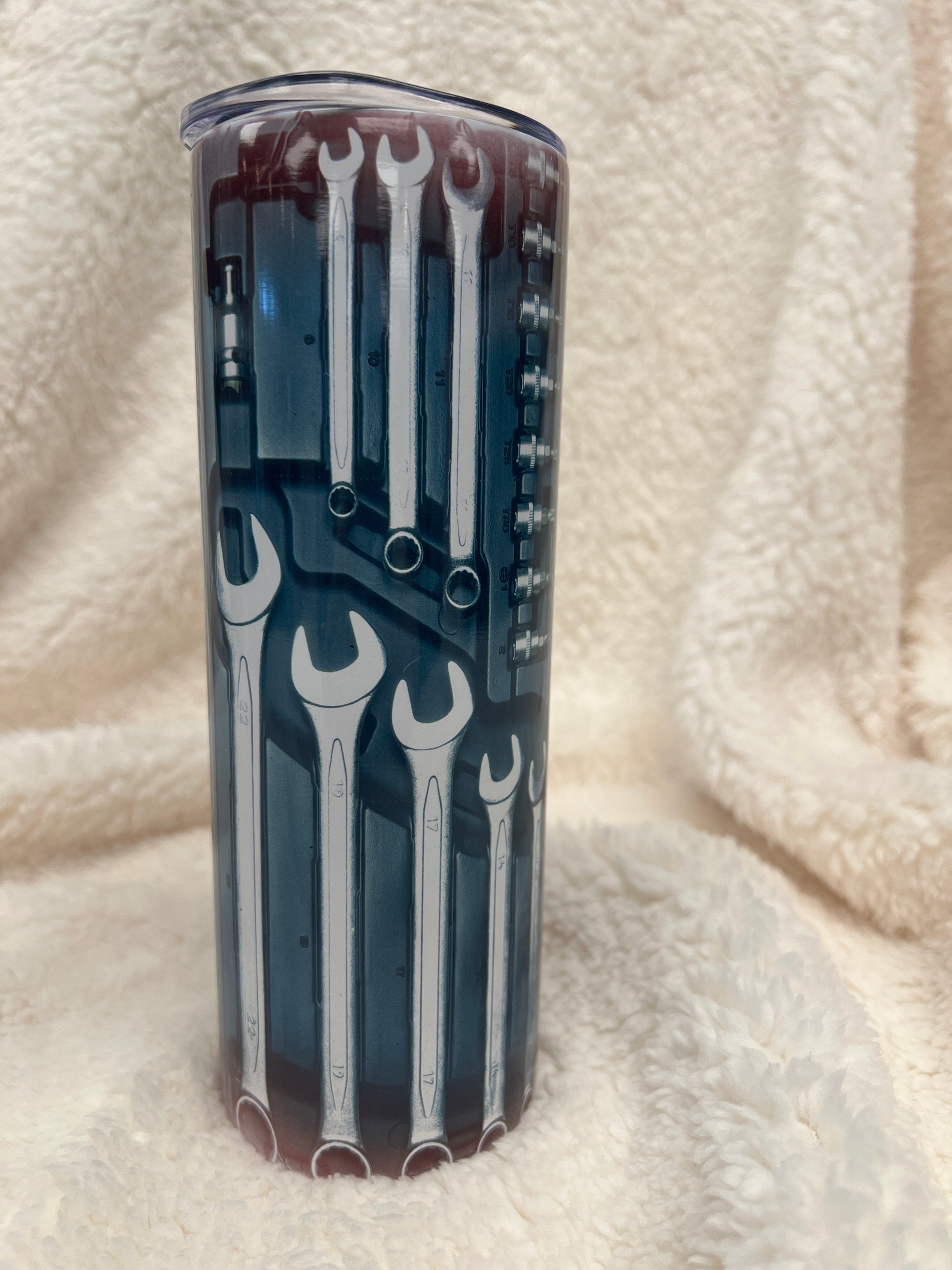 This 20oz stainless steel tumbler is great for your hot cocoa or coffee. Printed with our tool design! $18.99 each or $15 each if you buy 2 or more in a single transaction.