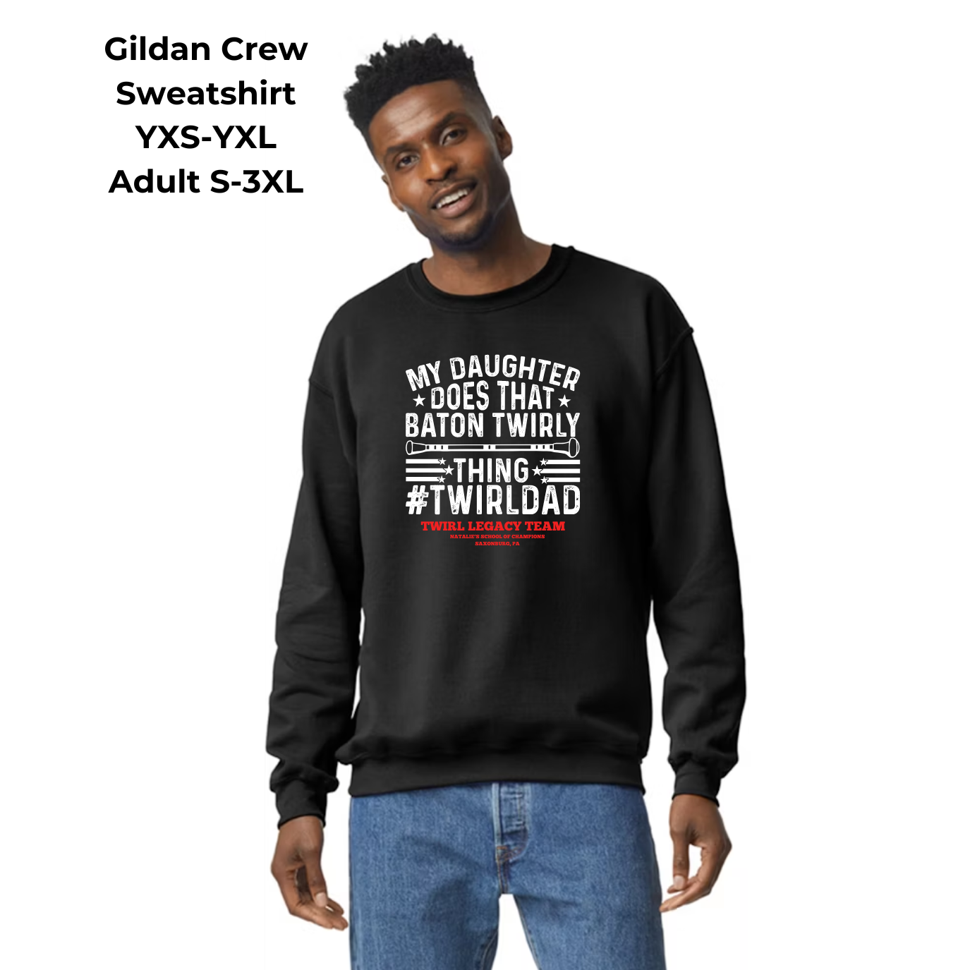 This Twirl Legacy Team shirt design is available in short sleeve, and crewneck sweatshirt styles.